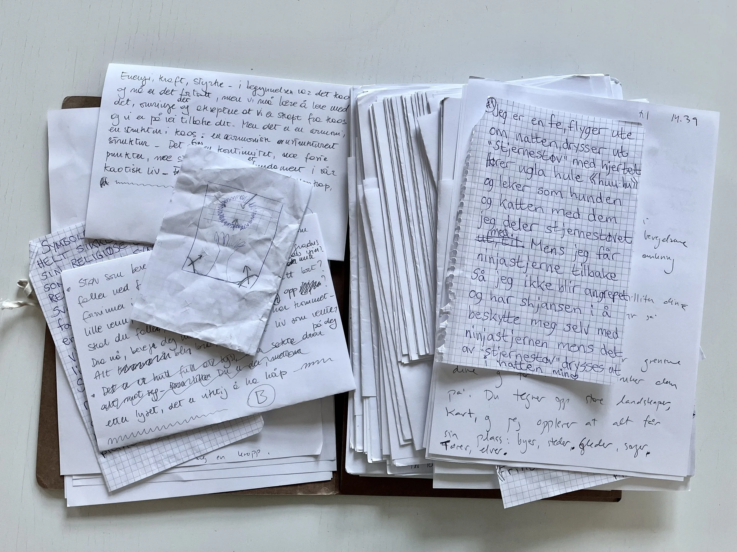 ”Jeg har også begynt å bruke benevnelsen Arche-writing” om det vi gjør, sier Thorsen og forteller at dette Derrida-begrepet beskriver en abstrakt og spontan skriving som uttrykker noe forfatteren ikke var seg bevisst fra før. Det bygger på en tanke om at språk for virkeligheten kan finnes selv om vi ikke bruker det. Det ligger inne i oss som en begynnelse på noe nytt, en mulighet eller et mål.